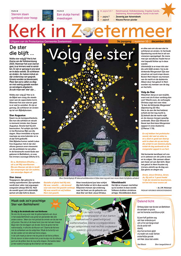 zondag 28 december: 10.00, Christus Triomfatorkerk, Den Haag; 19.30 uur, Ichthuskerk, W pwzn.nl en ctkerk.nl; kerkomroep.nl > zoetermeer > Ichthuskerk
